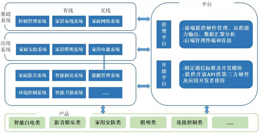 智能家居平臺(tái)的概念與Facebook、蘋(píng)果App應(yīng)用商店類(lèi)似,智能家居平臺(tái)商制定通信標(biāo)準(zhǔn)及開(kāi)發(fā)模塊等,然后提供開(kāi)放API(應(yīng)用程序編程接口)供第三方硬件及應(yīng)用開(kāi)發(fā)者使用,所有的硬件及應(yīng)用產(chǎn)品就可以無(wú)縫連接至平臺(tái)操作系統(tǒng),進(jìn)而平臺(tái)商、第三方硬件及應(yīng)用開(kāi)發(fā)者、用戶構(gòu)成一個(gè)全新的智能家居平臺(tái)生態(tài)鏈。目前國(guó)內(nèi)市場(chǎng)上活躍度比較高的有青島海爾家居集成股份有限公司、全智慧科技(北京)有限公司、美的集團(tuán)股份有限公司(公開(kāi)A股)、小米科技有限責(zé)任公司、深圳市電陶思創(chuàng)科技有限公司、北京京東世紀(jì)貿(mào)易有限公司、北京百度網(wǎng)訊科技有限公司、阿里巴巴(中國(guó))有限公司等8家企業(yè)。