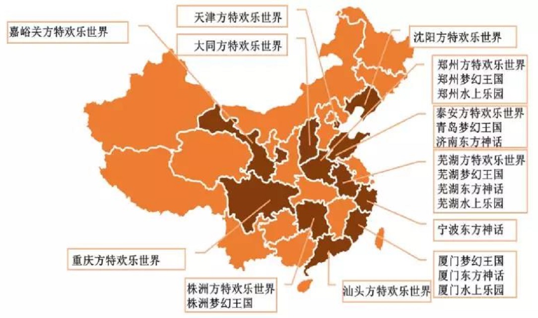 長隆集團有5個主題公園和2個馬戲城,以廣東為大本營,集中布局廣州和珠海度假區(qū),雖然布局城市少,但每一個度假區(qū)都規(guī)模龐大。未來長隆集團有意走出廣東,布局海南。