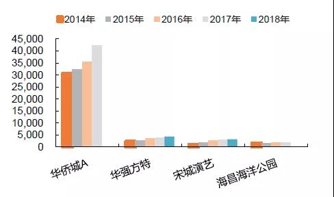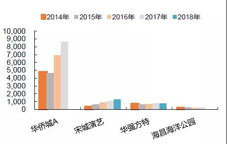 總體來看,華僑城、華強方特、長隆集團、海昌海洋主題公園以器械游樂類和動物海洋類為主,可復制性強,業(yè)務(wù)類似,競爭較激烈,因此其區(qū)域布局重合度較少,避開了競爭。除了長隆布局集中外,其他四家公司布局區(qū)域都比較分散,且布局側(cè)重點不同。華僑城重點布局一線城市和省會城市,華強方特主要布局二三線城市,長隆集團布局廣州和珠海,海昌海洋重點布局省會城市、直轄市等相對發(fā)達城市,宋城演藝其他四家公司不構(gòu)成直接競爭,布局主要在熱門旅游城市。